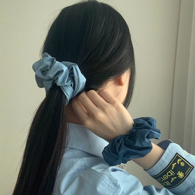 데님 청 곱창 밴드 스크런치 헤어 슈슈 머리끈