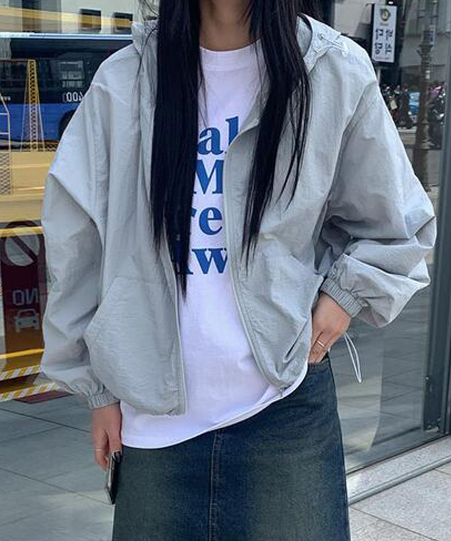 레이키 나일론 바람막이 후드 점퍼