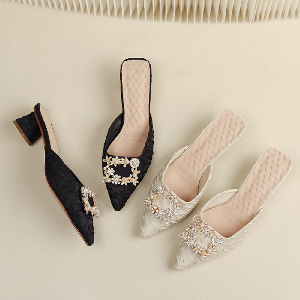 베지트 4cm 스틸레토 통굽 뮬 큐빅 슬리퍼 힐 3color