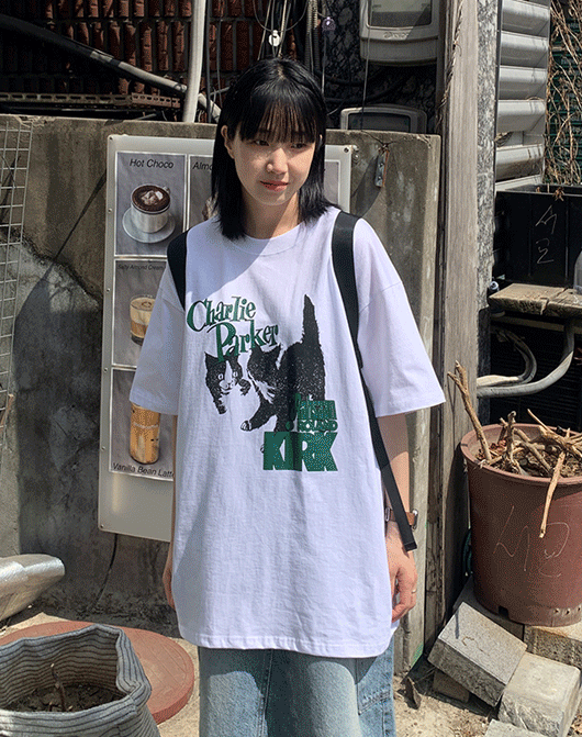 [6천장돌파][unisex] 티커 캣츠 프린팅 반팔 티 (3color)