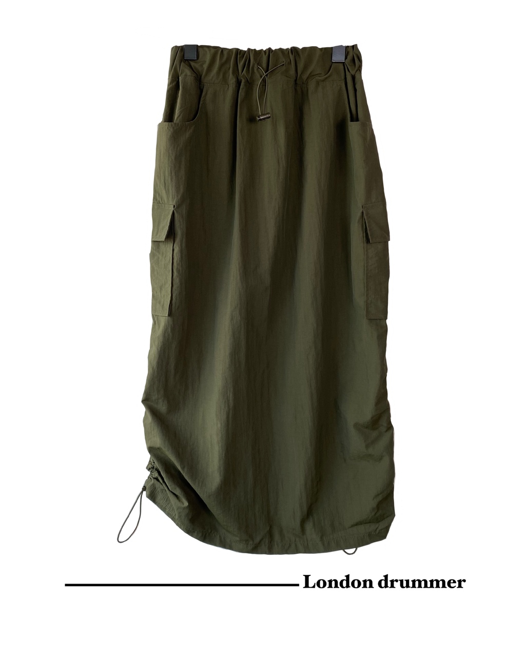 [당일출고]스트링 밑단 셔링 카고 롱 스커트