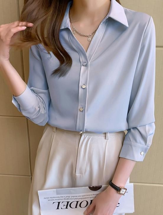 여자 여성V넥 실크느낌 셔츠 블라우스 인기 추천