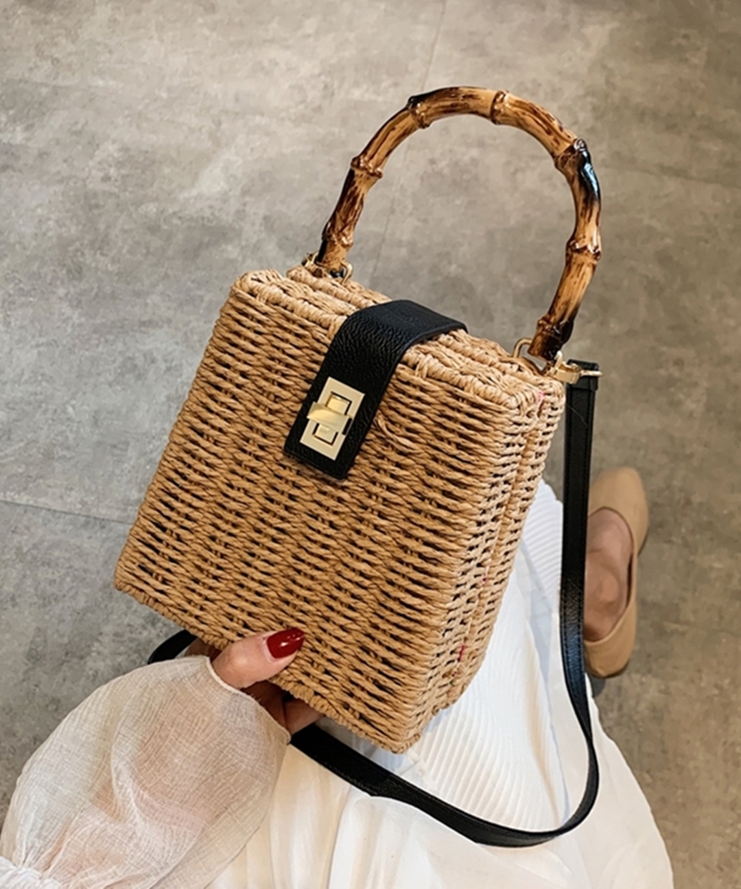 뱀부 대나무 핸들 지사 라탄 토트백 크로스백 여름 가방