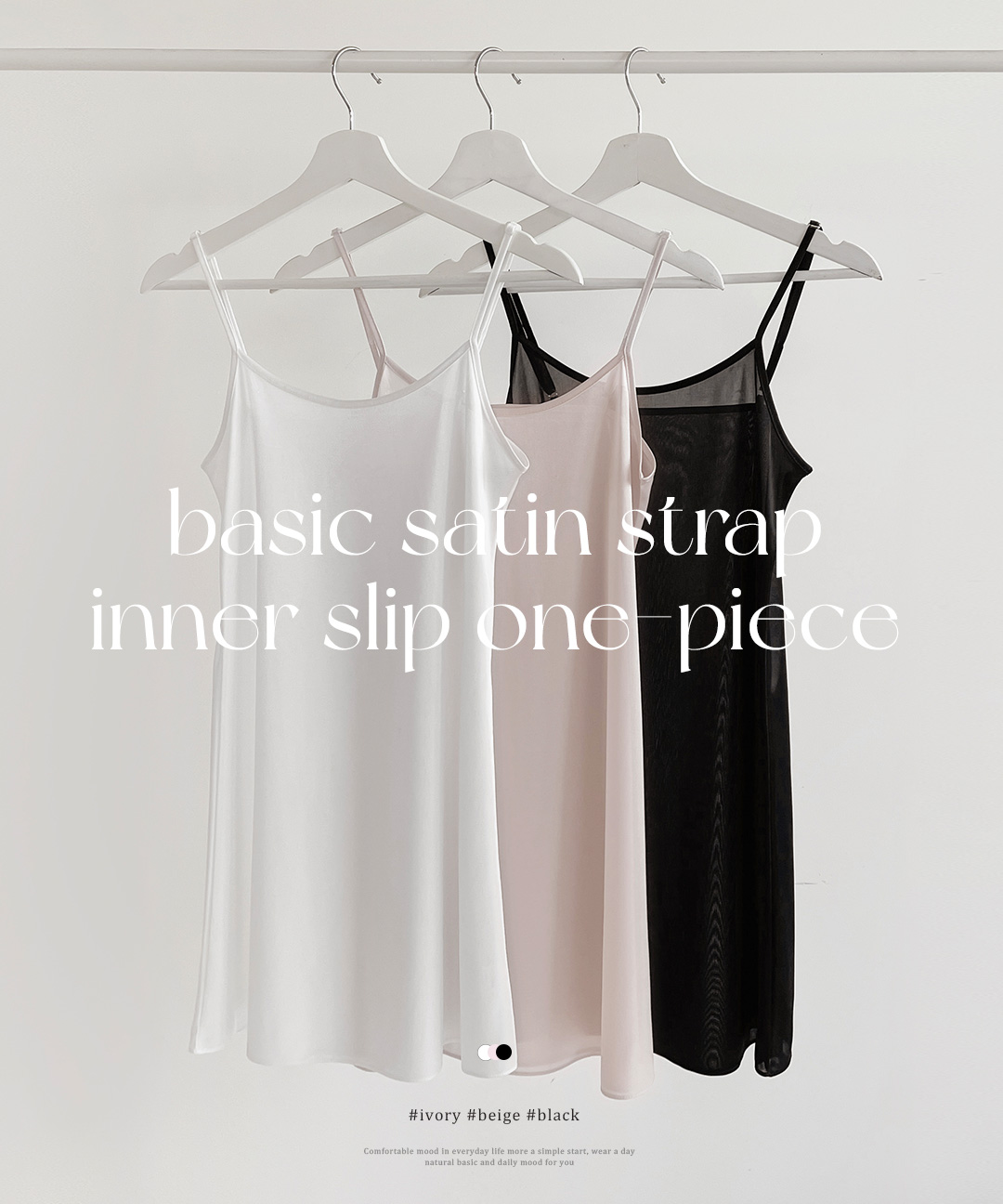베이직 새틴 끈조절 이너 슬립 원피스신상/데일리룩/데일리/봄/여름/나시/끈/홈웨어/레이어드/심플/시스루