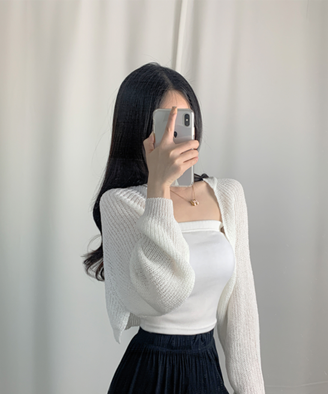 [여리핏]크롭 부클 볼레로 가디건 여름 가벼운 아우터 망사 니트