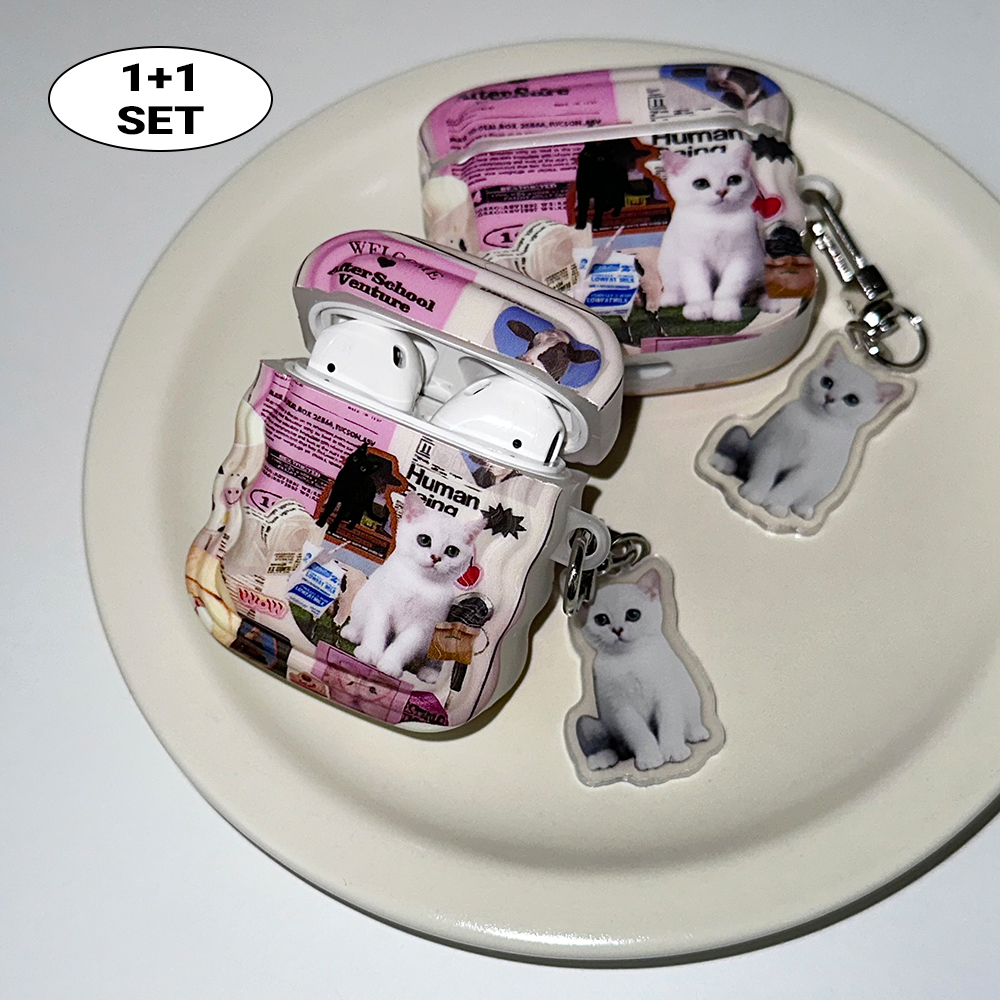 [당일출고] 화이트캣 키링 세트 고양이 포스터 Y2K 에어팟케이스