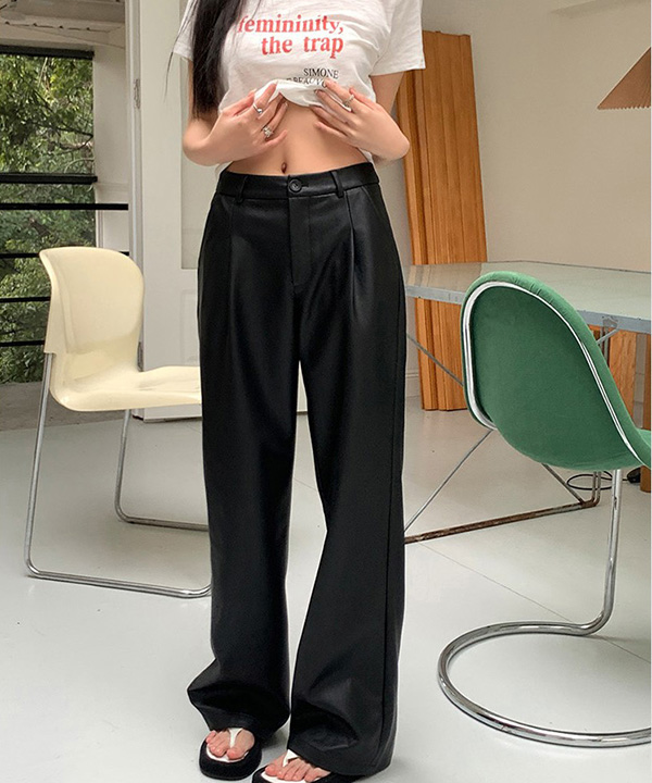 무료배송 셀러버 스트레이트 가죽팬츠 (블랙)