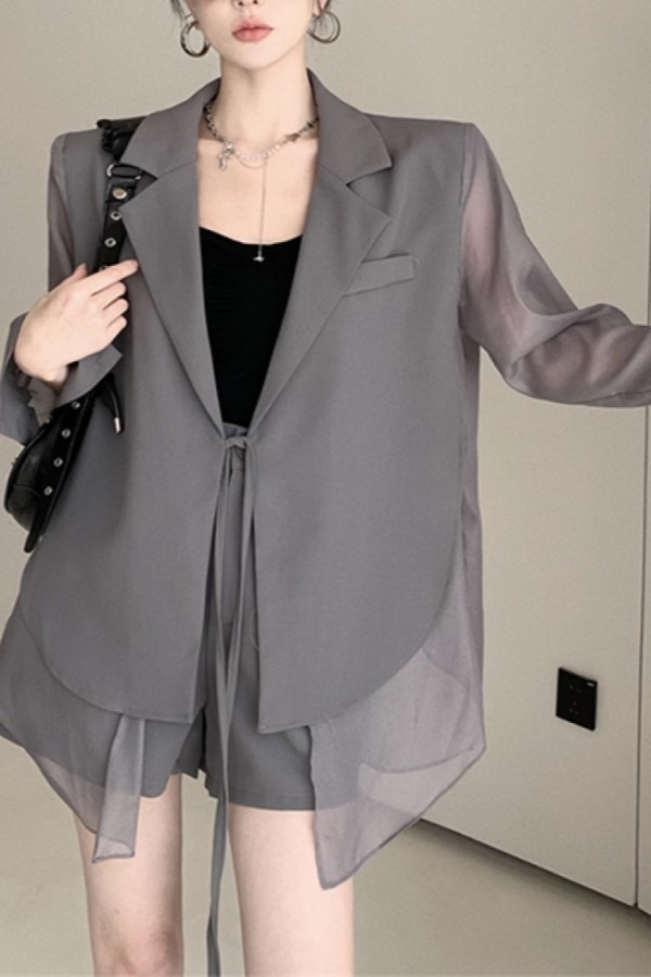 set 마이 폴로 카라 브이넥 메쉬 긴팔 롱슬리브 자켓 반바지 투피스 세트