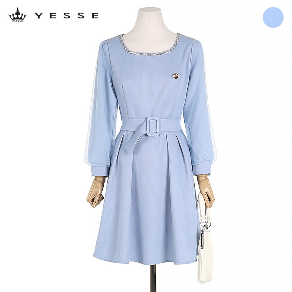 (예쎄) 쥬얼리 라운드넥 벨티드 미디 원피스(S3SOP002A)