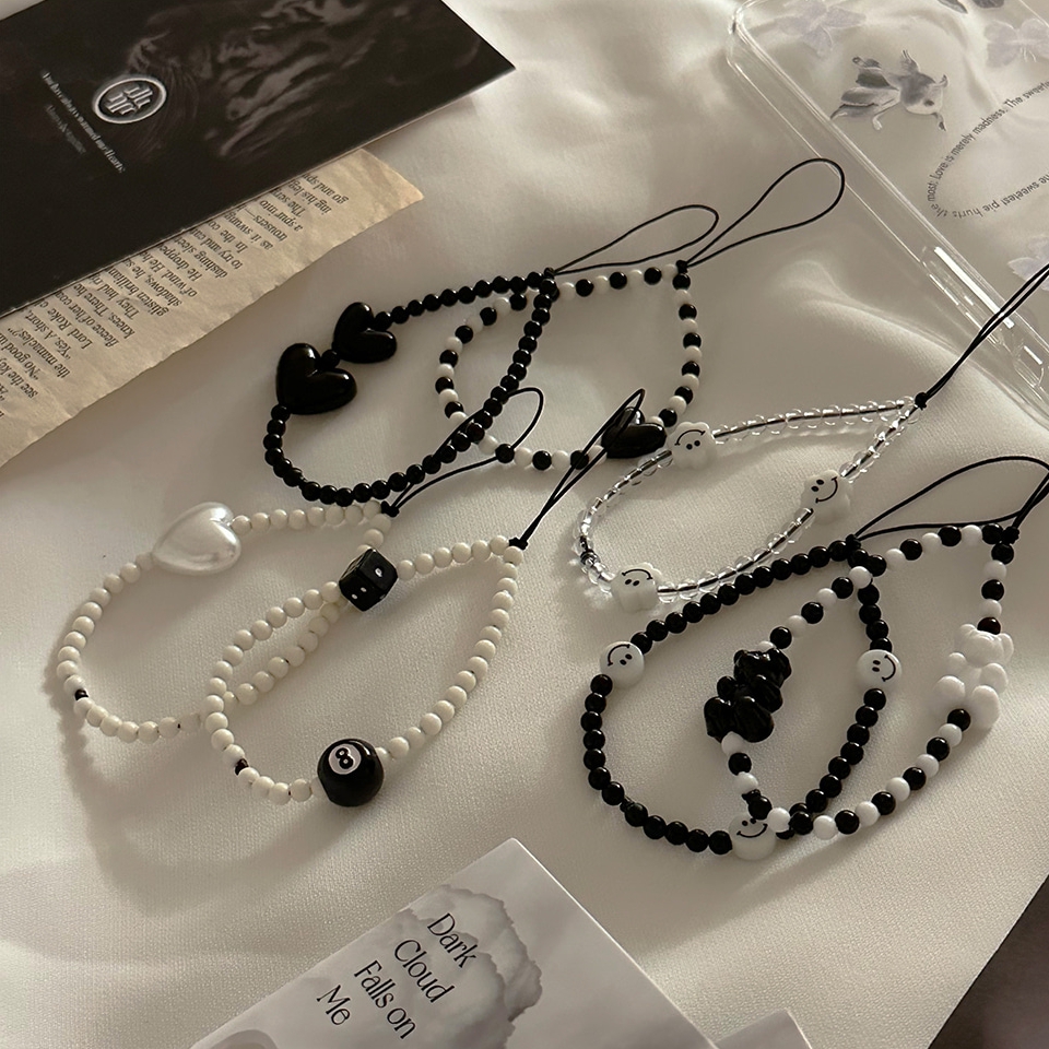 심플 블랙 화이트 비즈스트랩 핸드폰 스트랩 키링