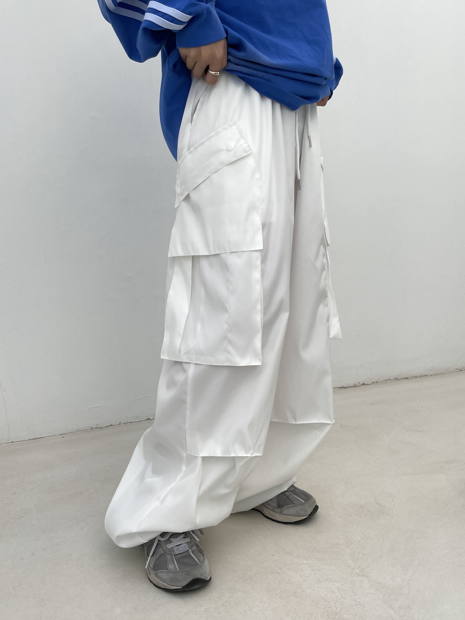 (2COLOR) 사이드버튼 롱오버 카고팬츠 (벌룬팬츠, 화이트바지, 화이트카고팬츠)