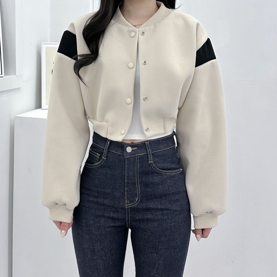[크롭 바시티 자켓] y2k 간절기 모직 숏 배색 야구 잠바 블루종 점퍼 아우터