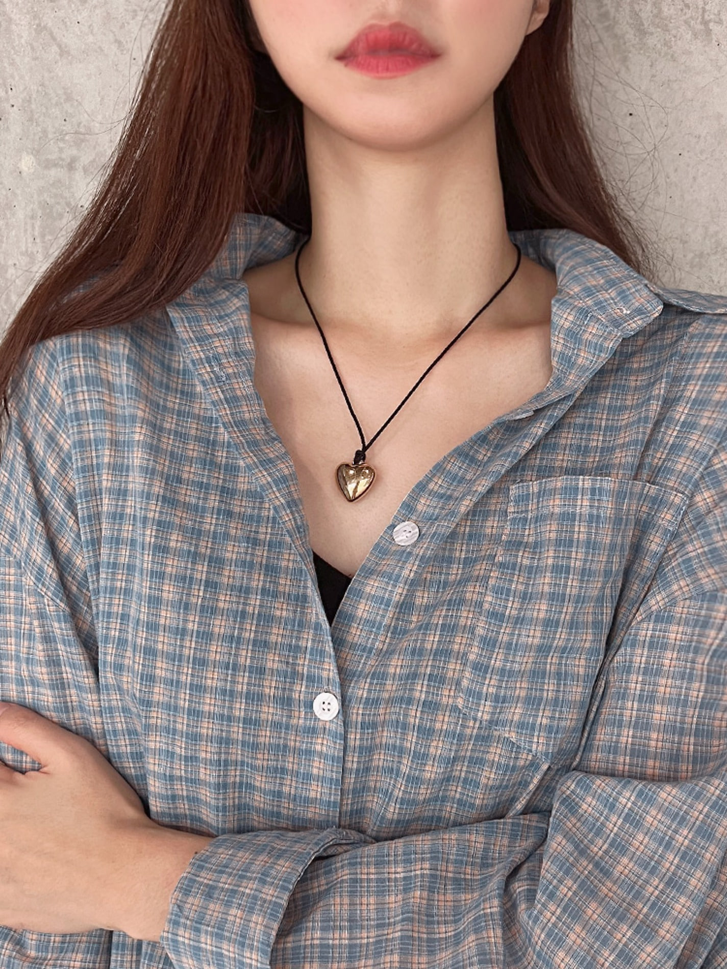 [10시이전 결제 당일발송/2colors] 통통 메탈 블랙스트링 롱하트 네크리스