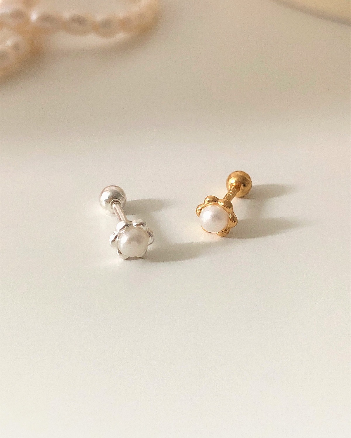 silver92.5 쁘띠 담수진주 플라워 피어싱 - 18k도금, 실버