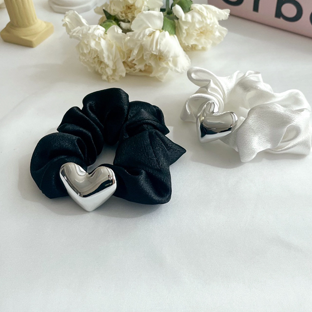 메탈 실버 볼드 하트🤍스크런치 미니 헤어슈슈 곱창 머리끈