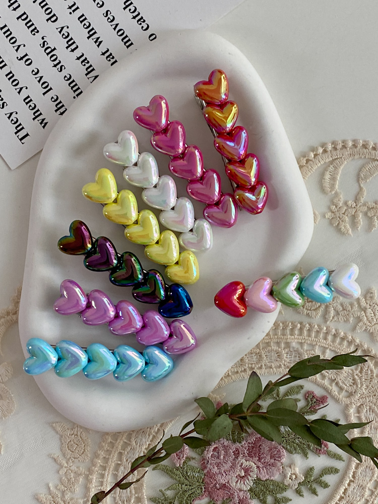 하트일자 펄 투명 옆머리 헤어 집게핀 16color