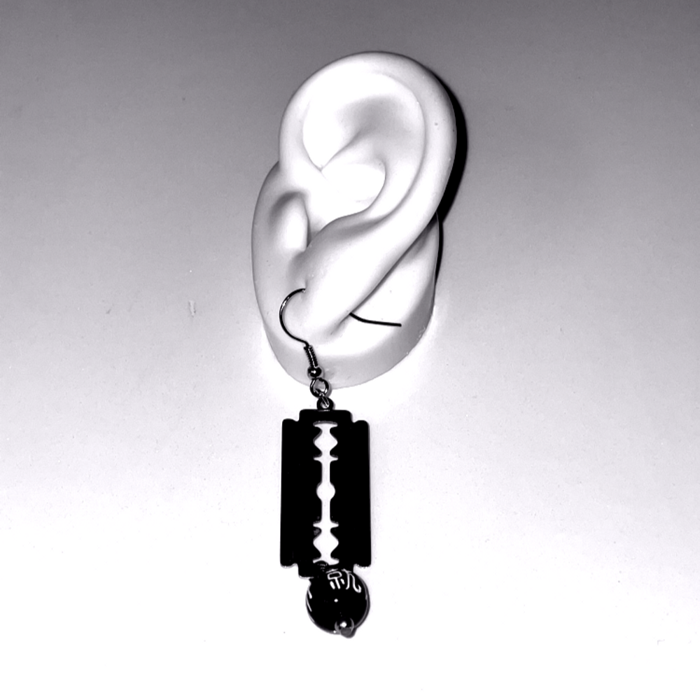 [은침/귀찌가능] 면도칼 염주 귀걸이 동양풍 한자 이어링 비즈 유니크 스트릿 힙합 펑크 엔틱 빈티지