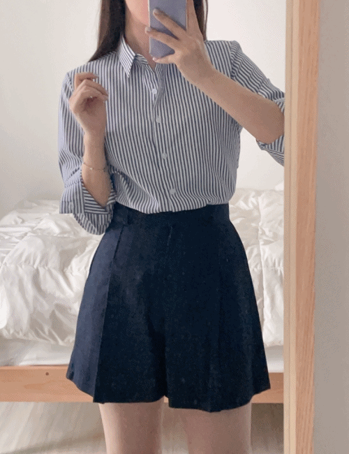 (S,M) 히든 하이웨스트 핀턱 4부 데님 팬츠 - 진청 흑청