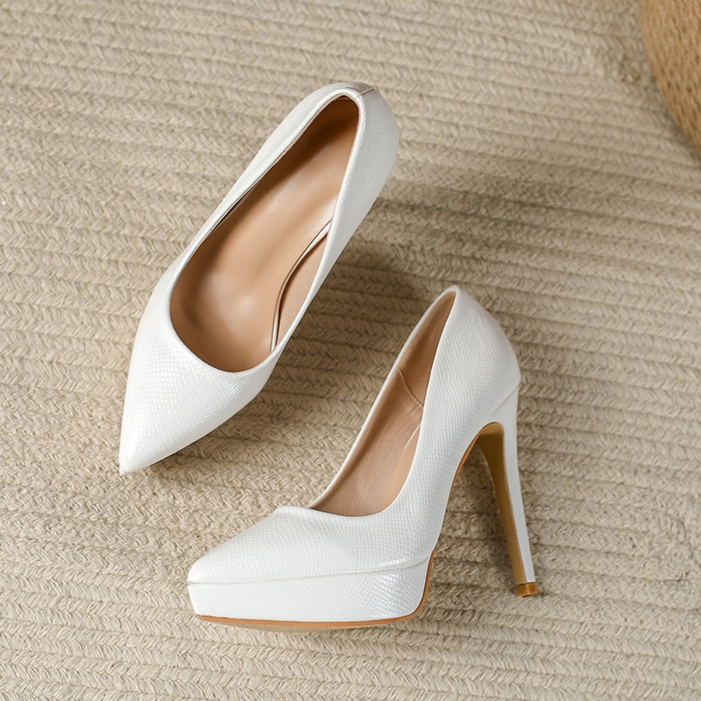 바이민 12cm 화이트 가보시 킬힐 스틸레토 웨딩 구두 1color