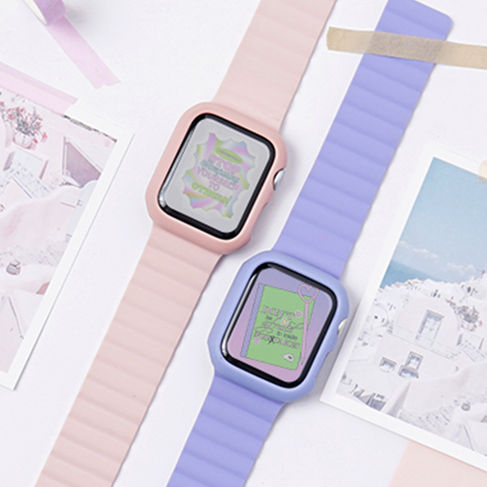 [Set🍭] 애플워치 스트랩 케이스 세트 9 8 7 6 se 2 호환 실리콘 마그네틱 스포츠 풀커버 시계줄 밴드 줄질