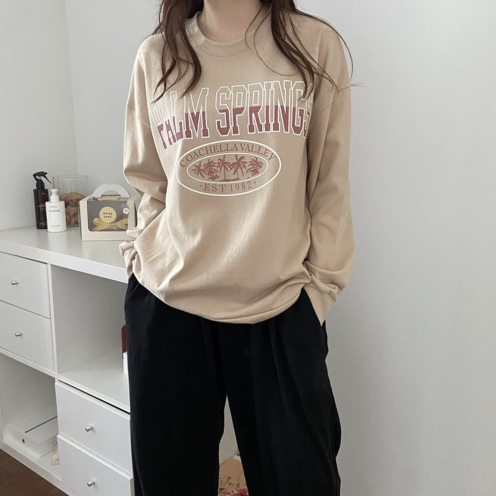 고밀도 루즈핏 팜스프링스 레터링 나염 티셔츠 2컬러