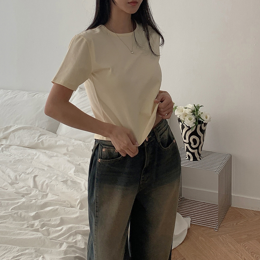 [당일출고] #리뉴얼 [ MADE ] 데이브 스판 라운드넥 크롭 기본 반팔 티셔츠