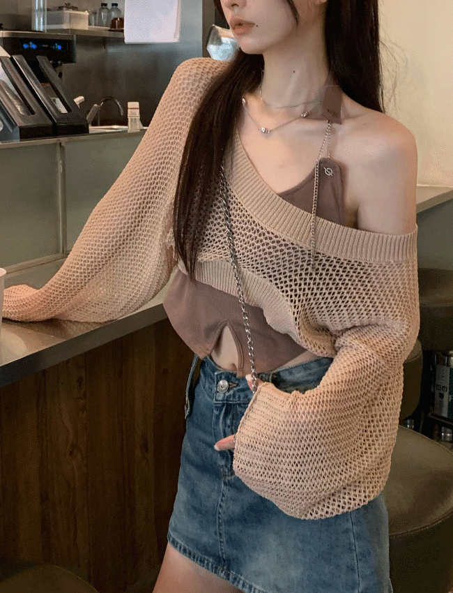 [여름신상/여름코디세트]루즈핏 베이지 그물니트 가오리핏 벌룬핏 볼레로 가디건 크롭 맨투맨 브라운 슬림 나시 상의 투피스 긴팔 블라우스 오프 숄더 탑
