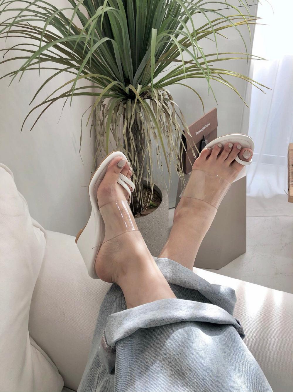 여성 웨지 쪼리슬리퍼 발편한 8cm통굽 투명언발샌들 225-250 화이트힐 실버뮬3컬러