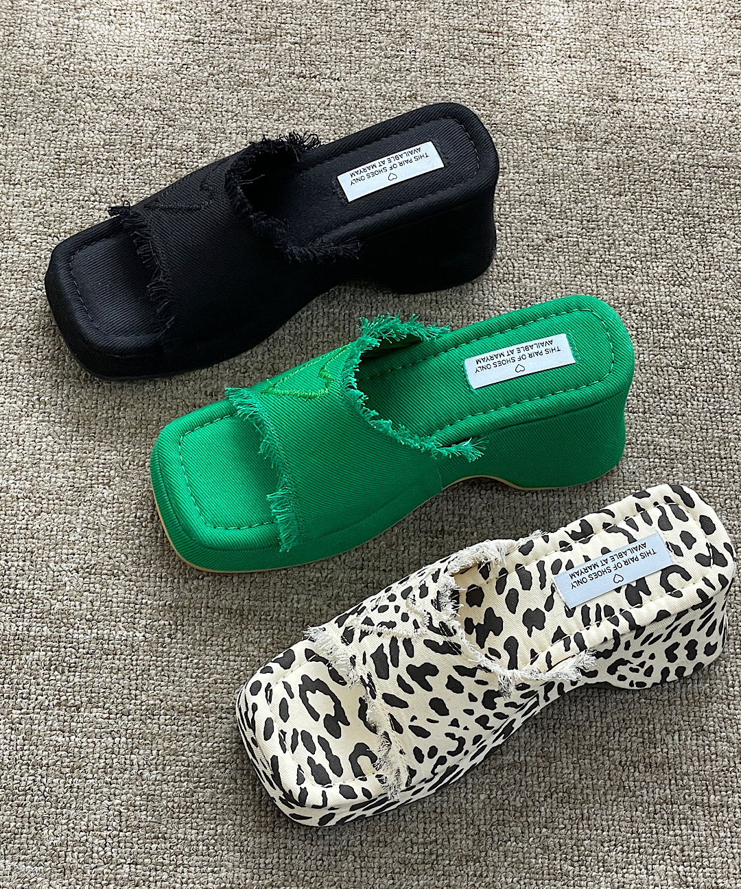 키치sho 유니크 레오파드 하트 스퀘어 수술 여름 뮬 통굽 가보시 샌들 힐 슬리퍼(3col)