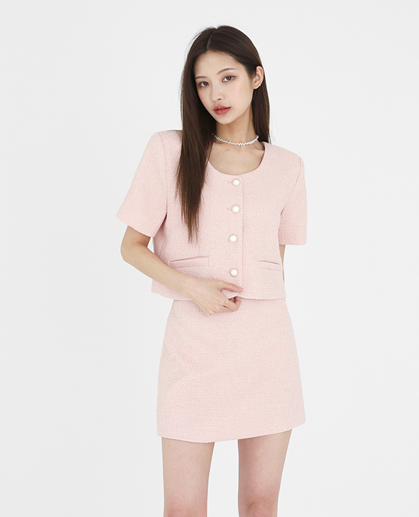 베니토 노카라 반팔 트위드자켓 스커트 셋업 (1color)