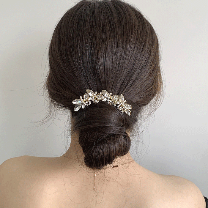 나비 티아라 큐빅 장식 메탈 유자 비녀 뒤꽂이 셀프 웨딩 한복 올림머리 헤어핀