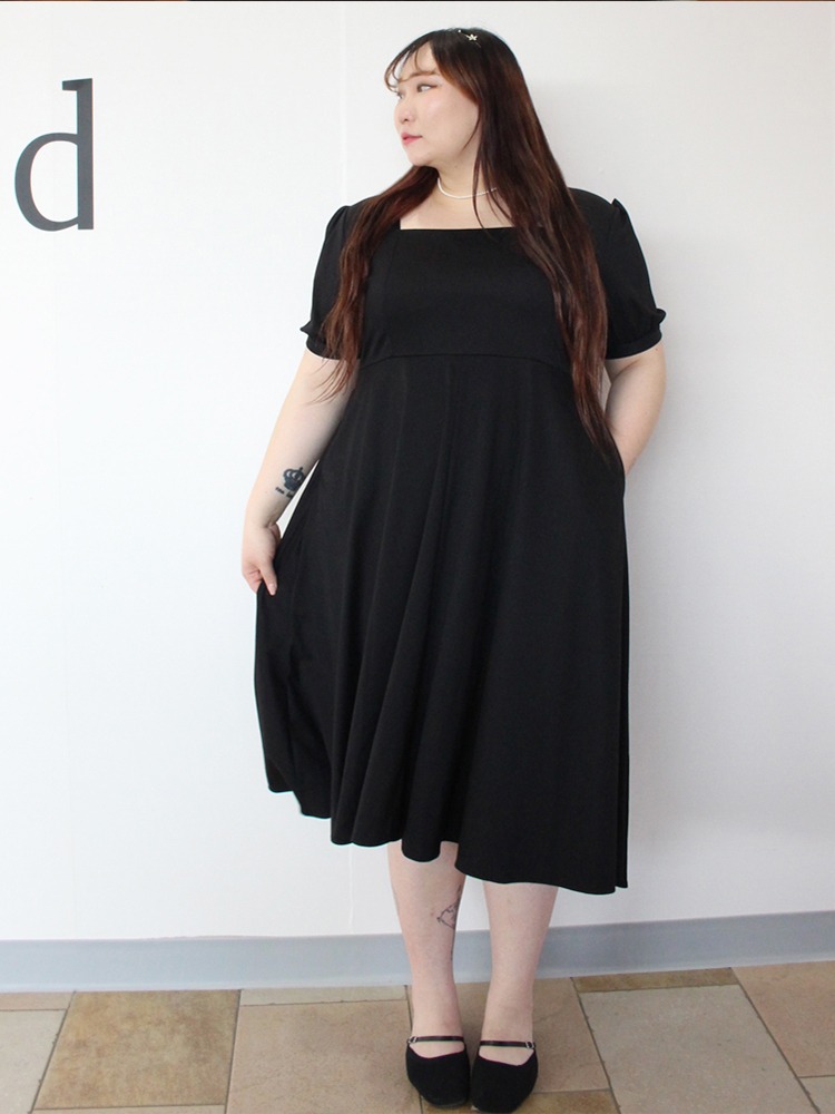 [~8XL] 여성 빅사이즈 4XL 6XL 8XL 빅사이즈 스퀘어넥 블랙 정장 원피스 퍼프 소매 롱 드레스 하객룩