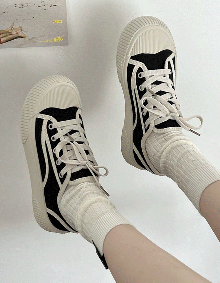 카단 배색라인 통굽 스니커즈 (3cm) - 2 Color
