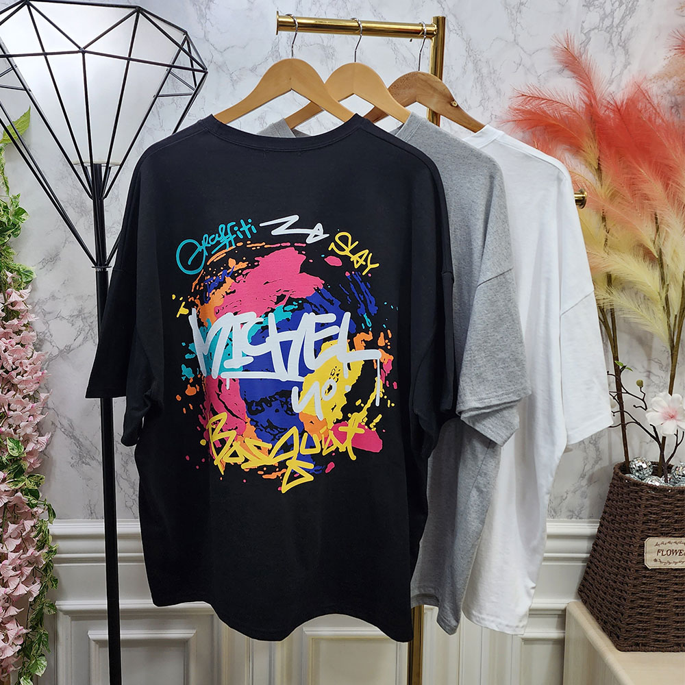 커플 페인팅 레터링 롱 박스 라운드 반팔 티셔츠 국내생산 면 3color