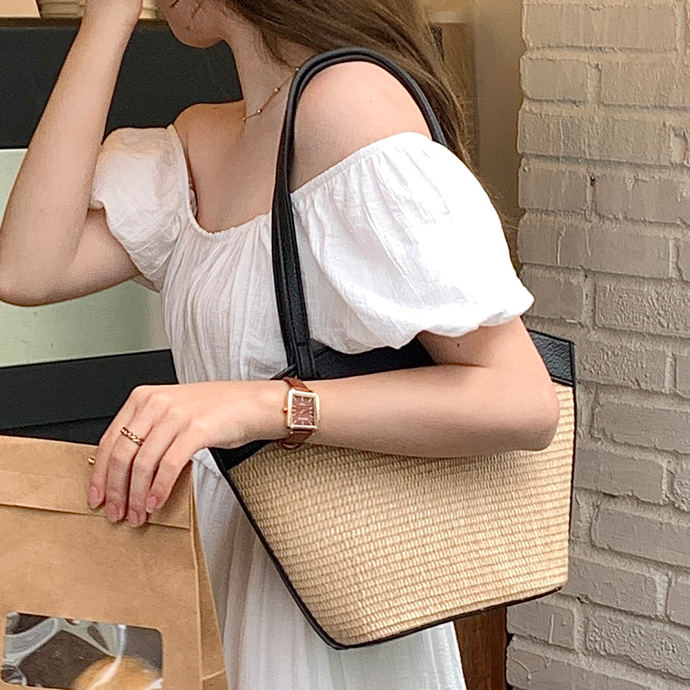[윤키] 휴양지가방 비치백 라탄 콤비 숄더백 여름가방