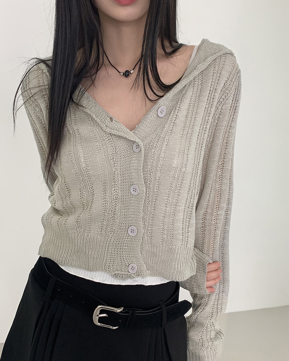 히렌 세일러 카라 부클 크롭 니트 가디건