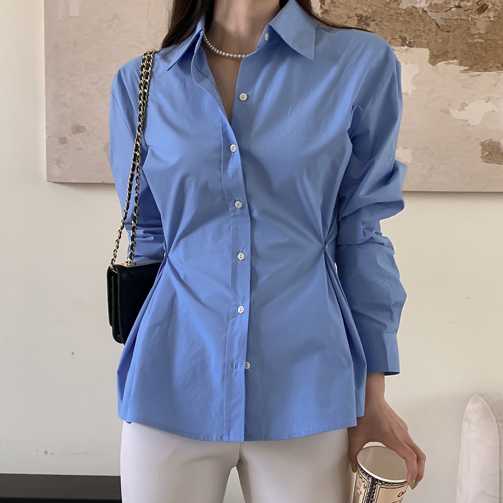 [단독] [Dali made/주문폭주]클레이 브이넥 버튼 투웨이 핀턱 코튼 셔츠(출근룩/하객룩/베이직)
