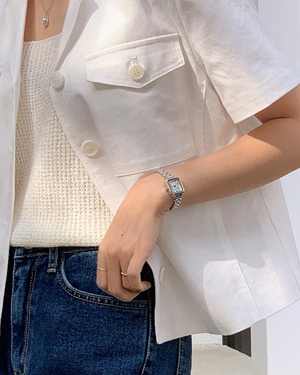 레슬리 스퀘어 실버 메탈 시계