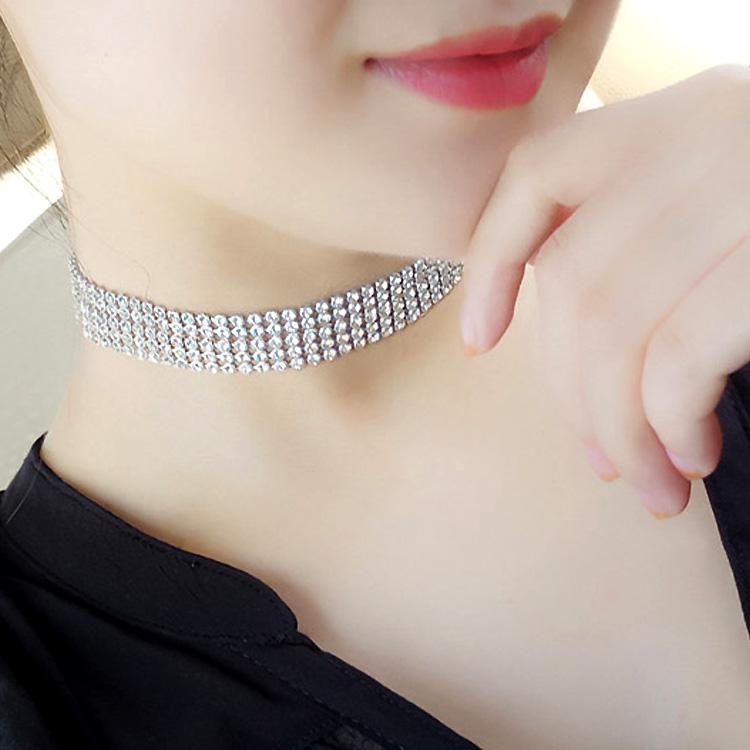 촬영 무대 파티 화려한 와이드 큐빅 초커 목걸이