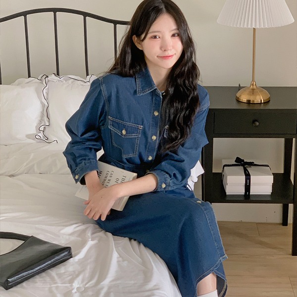 [2타입][MADE] 던스 카라넥 데님 롱원피스(44~110) (데님원피스-캐주얼룩-휴가룩-카라원피스-데님셔츠-빅사이즈원피스-셔츠원피스-데일리룩)