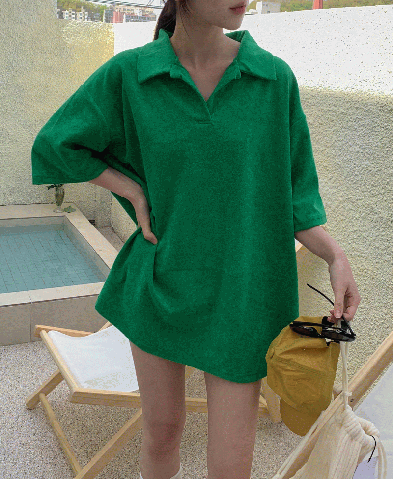 허니 타올 비치 바캉스 테리 카라 원피스 롱 티셔츠 [수영복커버업,워터파크,비치웨어]