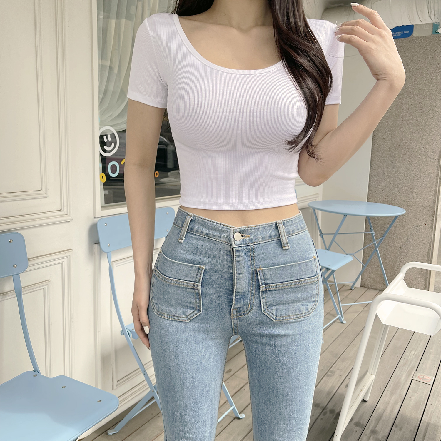 데일리 유넥 슬림 타이트 핏 크롭 기본 반팔 티셔츠 5컬러