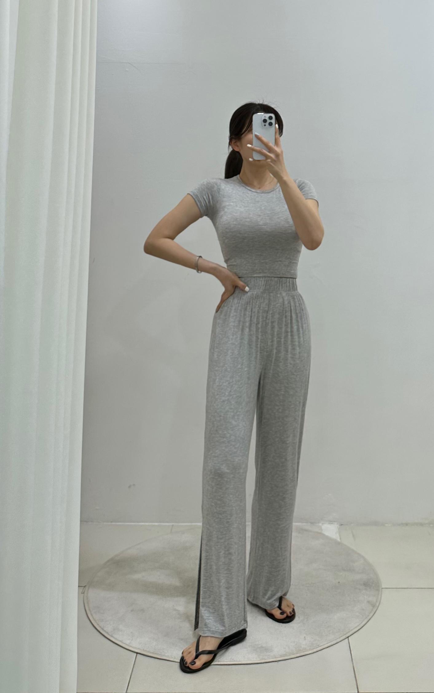 (2컬러)맆 특가 아이유 크롭 반팔티 트임 와이드 투피스 세트 트레이닝복
