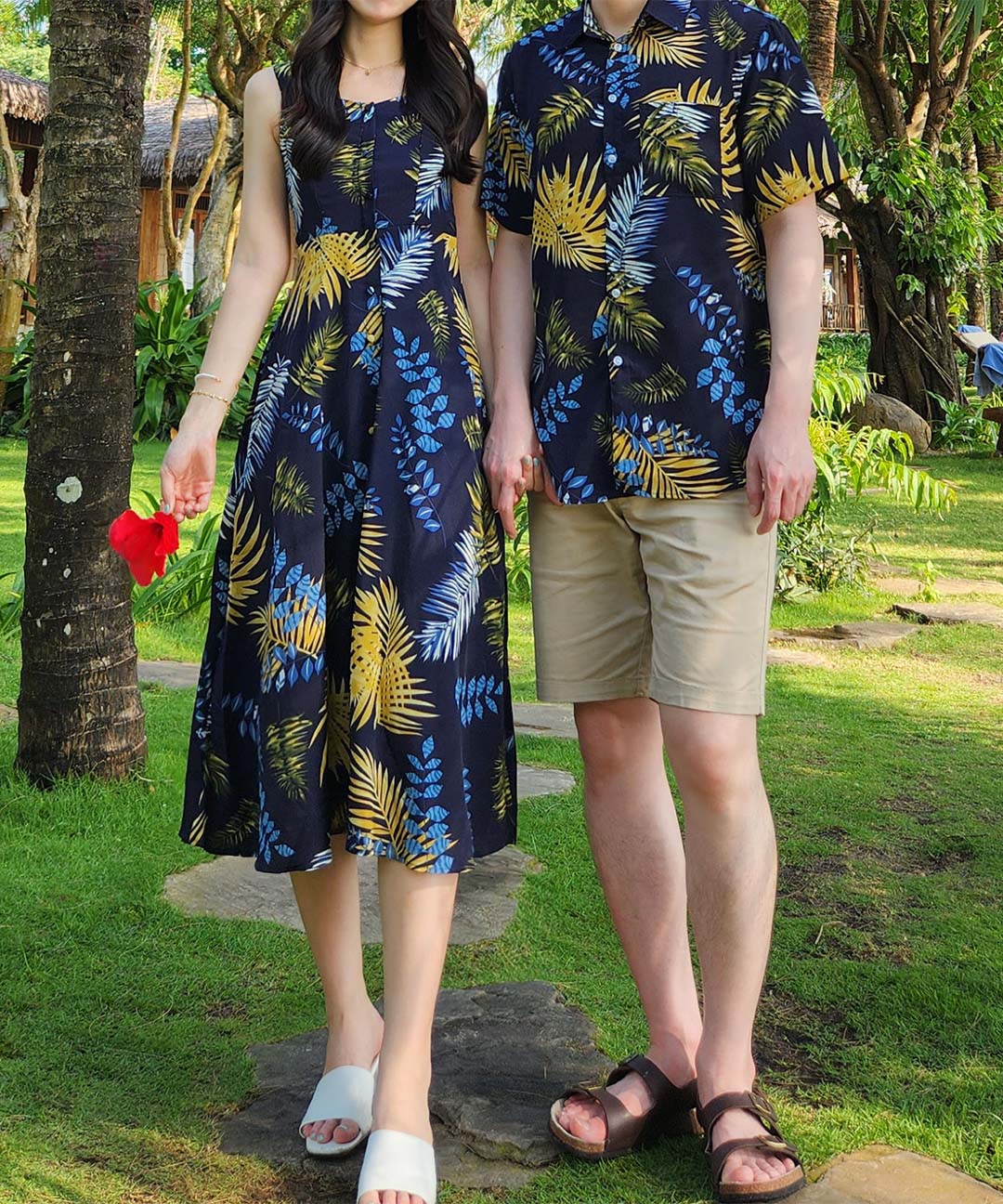 [단독][딱예쁜길이!] 휴양지 커플룩 커플 휴양지룩 하와이안 원피스 셔츠 신혼여행 바캉스 여름휴가룩 허니문