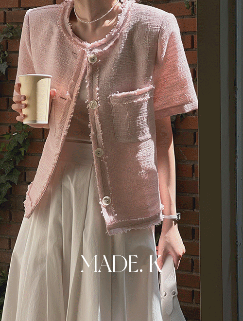 [자체제작/S-XL/하객룩🖤]#여름💙 엘린드 노카라 반팔 트위드 자켓 (하객룩/데이트룩/트위드자켓/반팔자켓/반팔트위드/노카라자켓/노카라트위드)