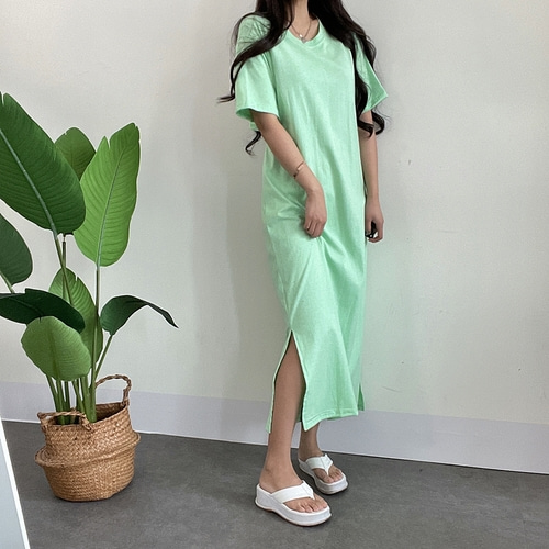 [꾸안꾸] 여름 캐쥬얼 뒤트임 반팔 롱 원피스