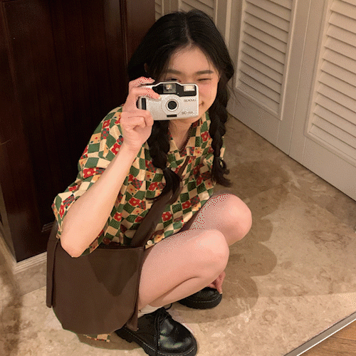 [여름셔츠/바캉스룩]키치한 꽃무늬 오버핏 체크 남방 그린 화이트 투톤 배색 셔츠 보이핏 루즈핏 레트로 꽃남방 귀여운 반팔셔츠 20대 30대 신상 코디 해변 여행 휴양지