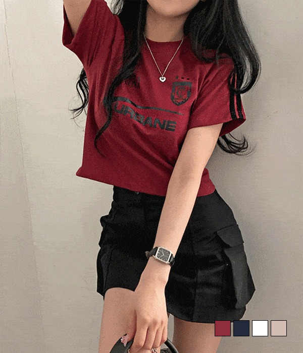[무료배송] 어반스 y2k 두줄 배색 져지 라인 크롭 반팔 티셔츠