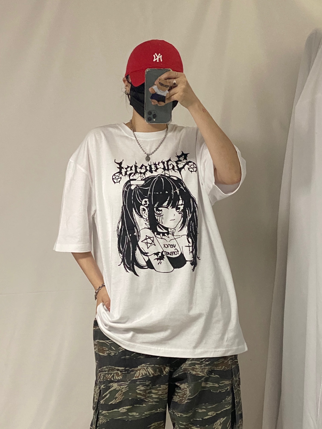 여름신상 키치 캐릭터 나염 반팔티셔츠 유니크 스트릿 데일리 오버핏 유니섹스 프린팅