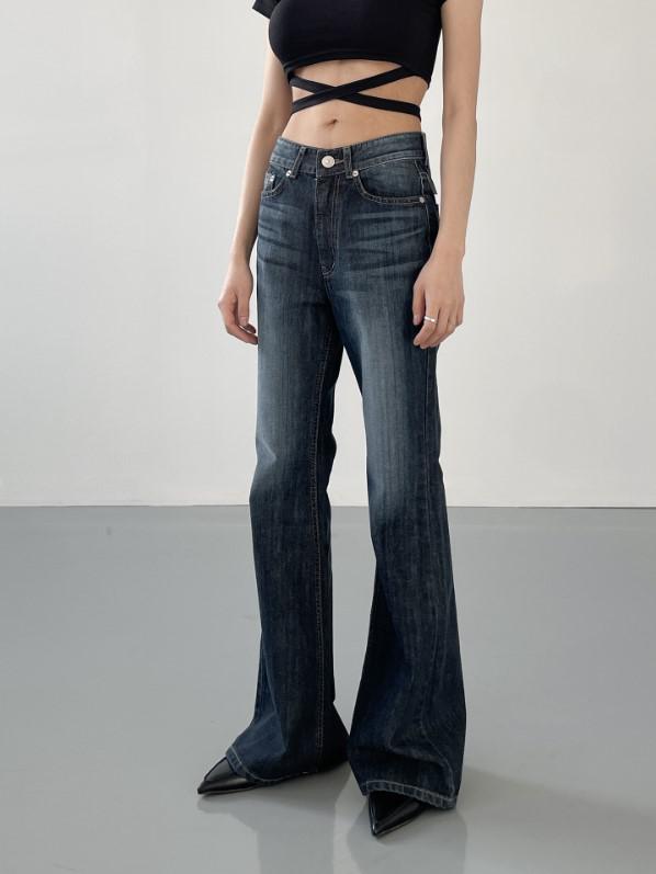 딥블루 블랙 워싱 슬림 부츠컷 데님 팬츠